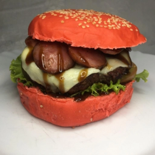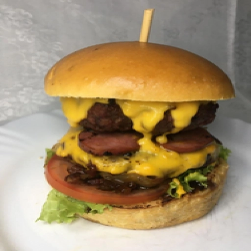 Pão brioche, 2 carne 160g na brasa, molho cheddar, calabresa, bacon, alface, tomate, salada especial. (Opcional: geleia... Ver completo