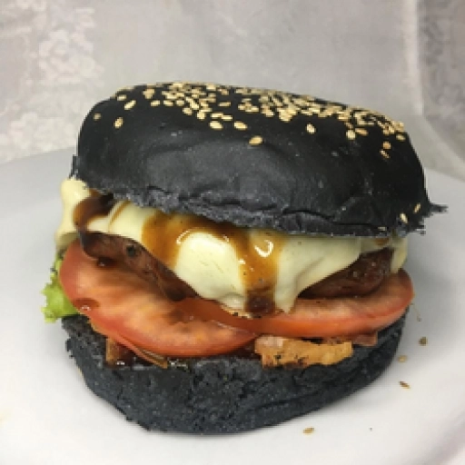 Pão black, carne de 160g na brasa, mussarela, bacon em cubos, alface, tomate e salada especial. (Opcional: geleia de ab... Ver completo